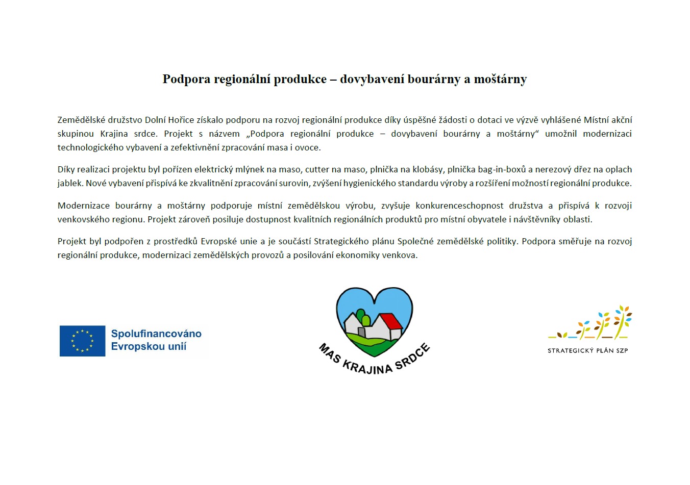 Vítejte na stránkách Zemědělského družstva Dolní Hořice. Půda pro nás není jen hlína pod nohama, ale základ života. Hospodaříme na 1891 hektarech zemědělské půdy, z nichž 383 hektarů tvoří travní porosty a 2,3 hektaru ovocný sad, ze kterého každoročně sklízíme jablka. Naše práce není jen o dnes, ale i o zítřku – o tom, co tu zanecháme dalším generacím.